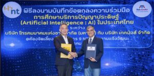 พันเอก สรรพชัยย์ หุวะนันทน์ กรรมการผู้จัดการใหญ่ บริษัท โทรคมนาคมแห่งชาติจำกัด (มหาชน) (NT) และ โรห์อิท กาพอร์ ประธานบริษัท เทคมังส์ จำกัด(TekMonks) ลงนามบันทึกข้อตกลงความร่วมมือ (MOU) ศึกษาบริการปัญญาประดิษฐ์ (Artificial Intelligence: AI) ในประเทศไทย มุ่งเป้าหมายพัฒนาโซลูชันด้าน AI