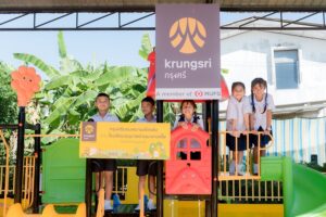 นอกจากนี้ กรุงศรี ยังได้นำวัสดุรีไซเคิลจากโครงสร้างและอุปกรณ์บูธกิจกรรมของธนาคารและบริษัทในเครือ มาปรับใช้ในการสร้าง “สนามเด็กเล่น” เพื่อต่อยอดการใช้ทรัพยากรอย่างคุ้มค่า เป็นมิตรต่อสิ่งแวดล้อม ซึ่งเป็นสนามที่ 2 โดยสนามเด็กเล่นแห่งแรกส่งมอบให้ โรงเรียนวัดยาง (มีมานะวิทยา) จังหวัดพิษณุโลก ตอกย้ำแนวคิดการดำเนินธุรกิจควบคู่ความยั่งยืน พร้อมสร้างรอยยิ้ม ความสุข และแรงบันดาลใจให้กับเด็ก ๆ ซึ่งเป็นรากฐานสำคัญของอนาคตประเทศ